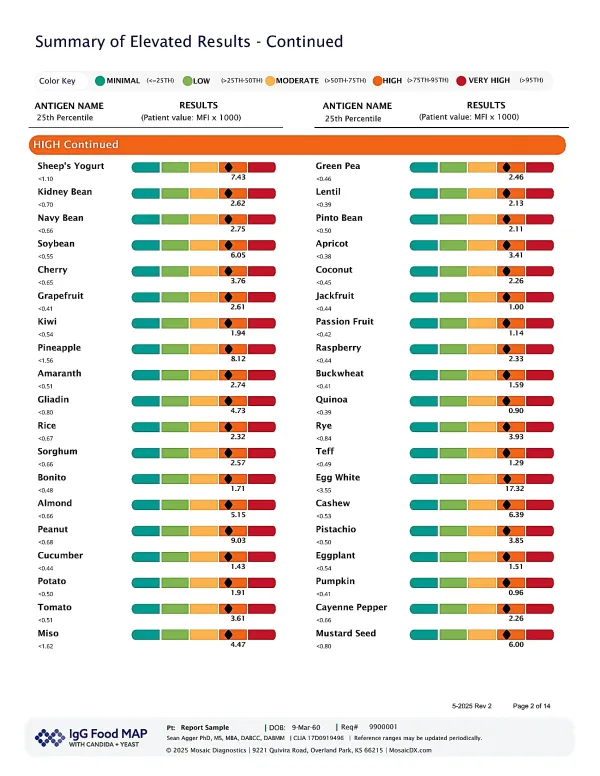 Test IgG reactivity to 96 foods
