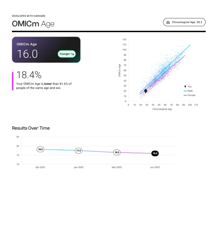 Powered by cutting-edge DNA methylation analysis and peer-reviewed epigenetic clocks, providing one of the most advanced biological age assessments available today.